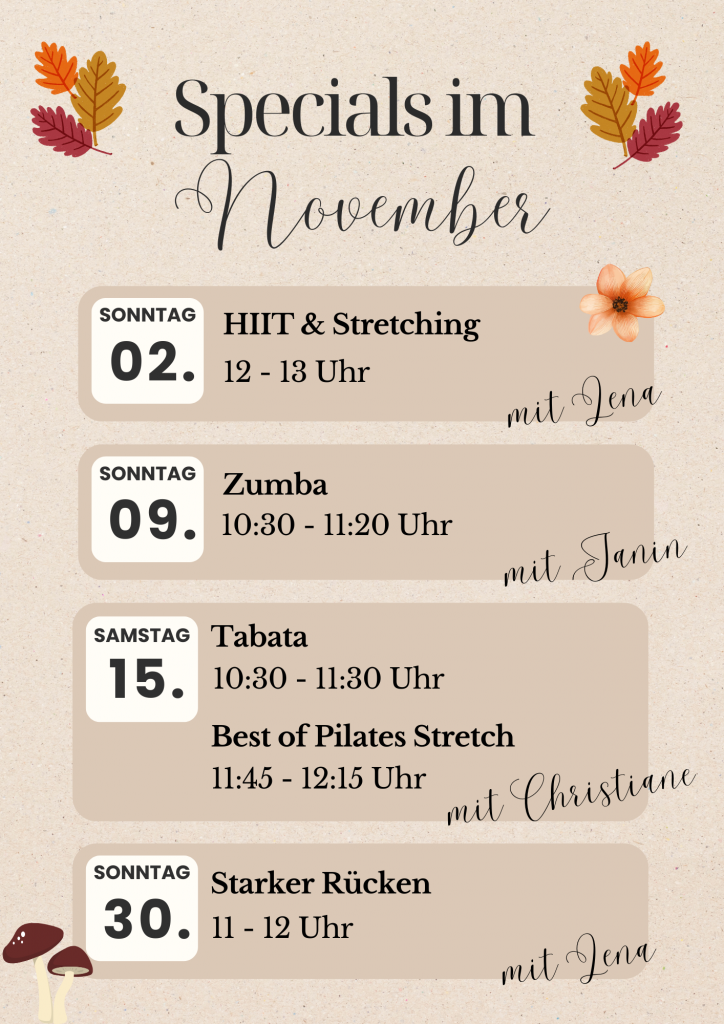 Im November sind wieder viele abwechslungsreiche Specials geplant, wir freuen uns auf Euch!