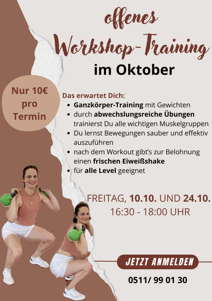 - Workshops und Schulungen rund um Gesundheit und Wohlbefinden, die auch ohne Mitgliedschaft buchbar sind